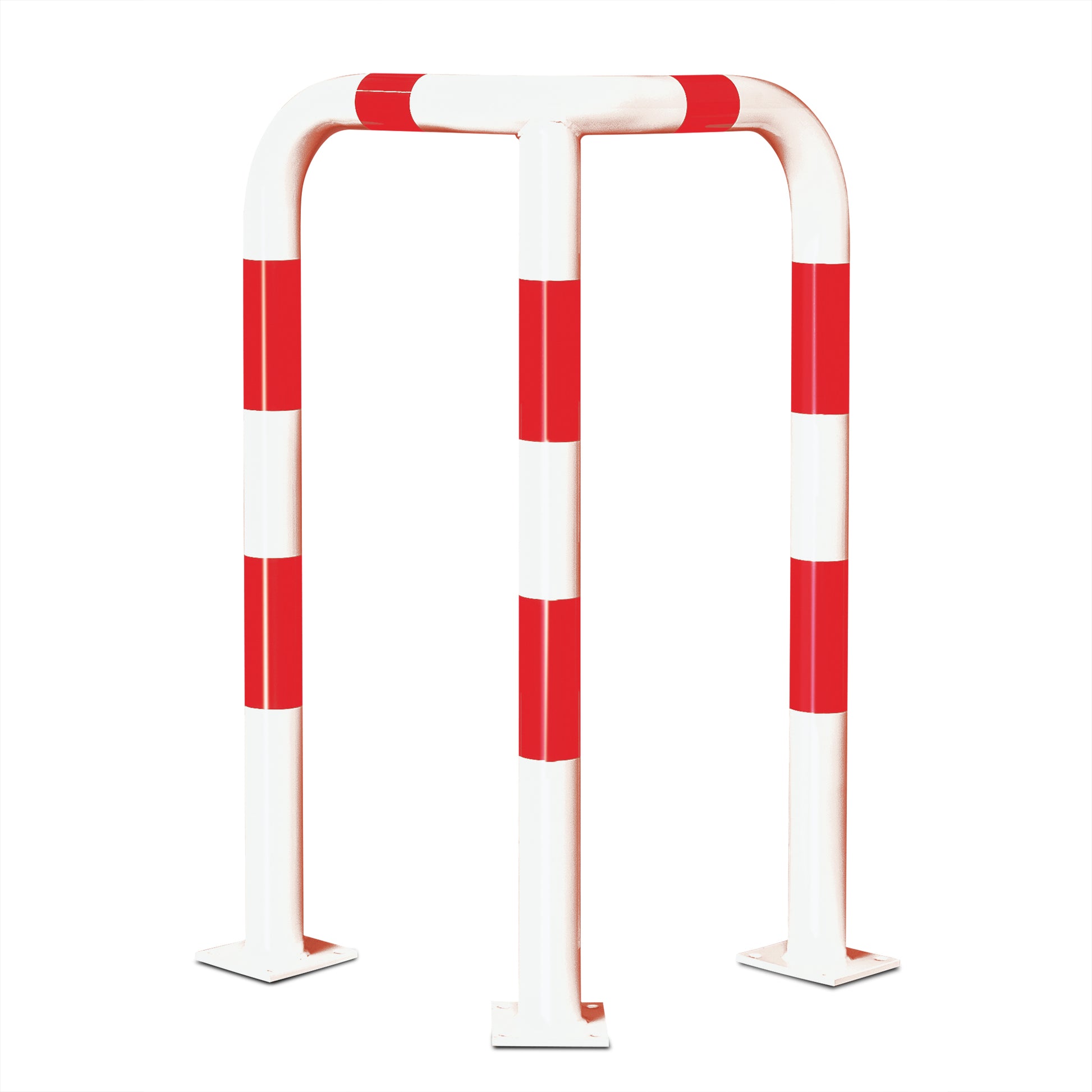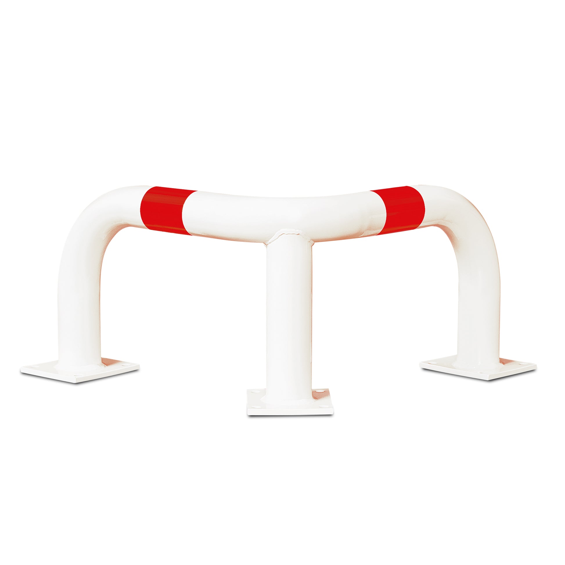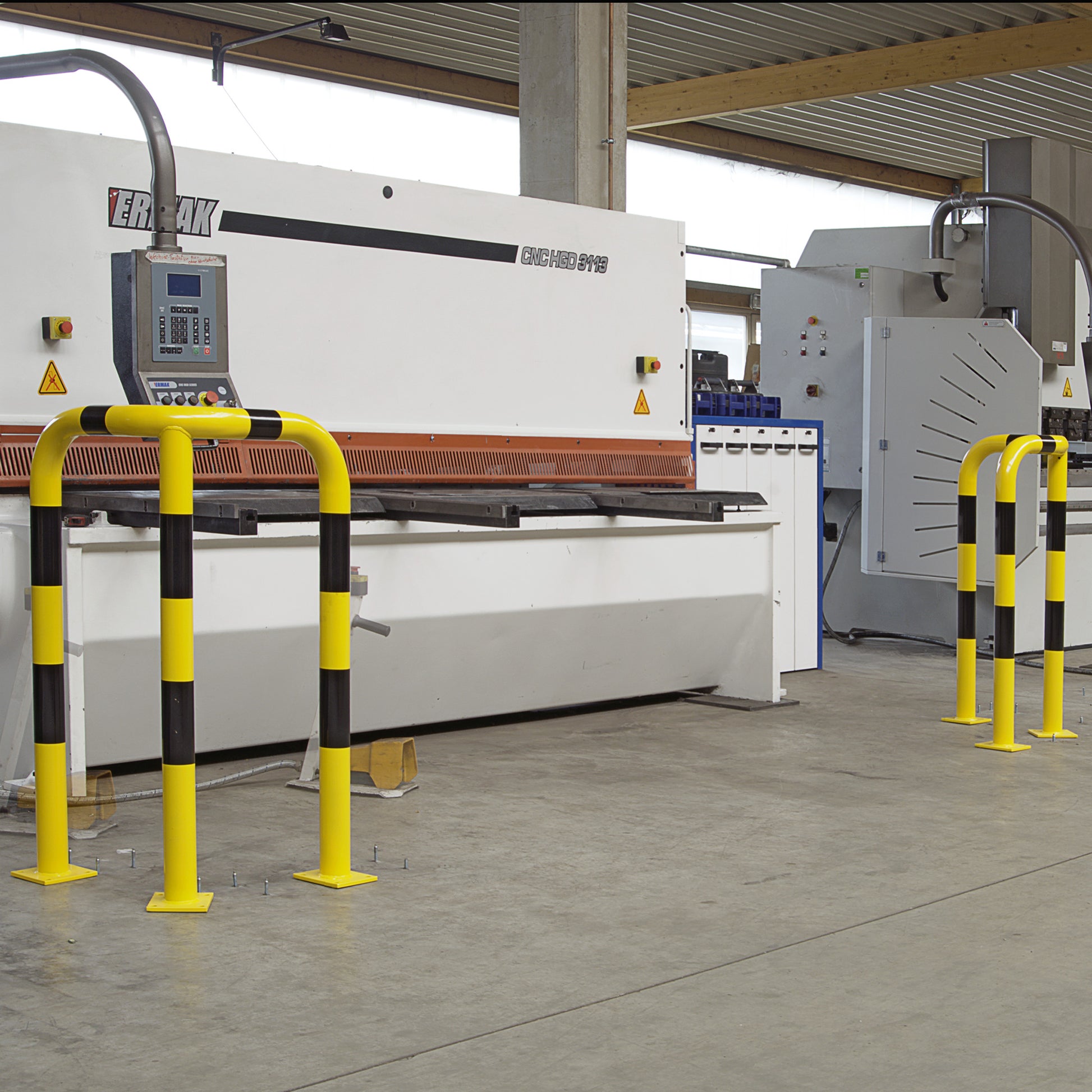 Die Schutzbügel trennen verschiedene Verkehrswege (z.B. Stapler- und Personenverkehr), schützen Maschinen, Pfeiler, Stützen, Säulen, Regale, (Roll-)Tore, Laderampen etc.