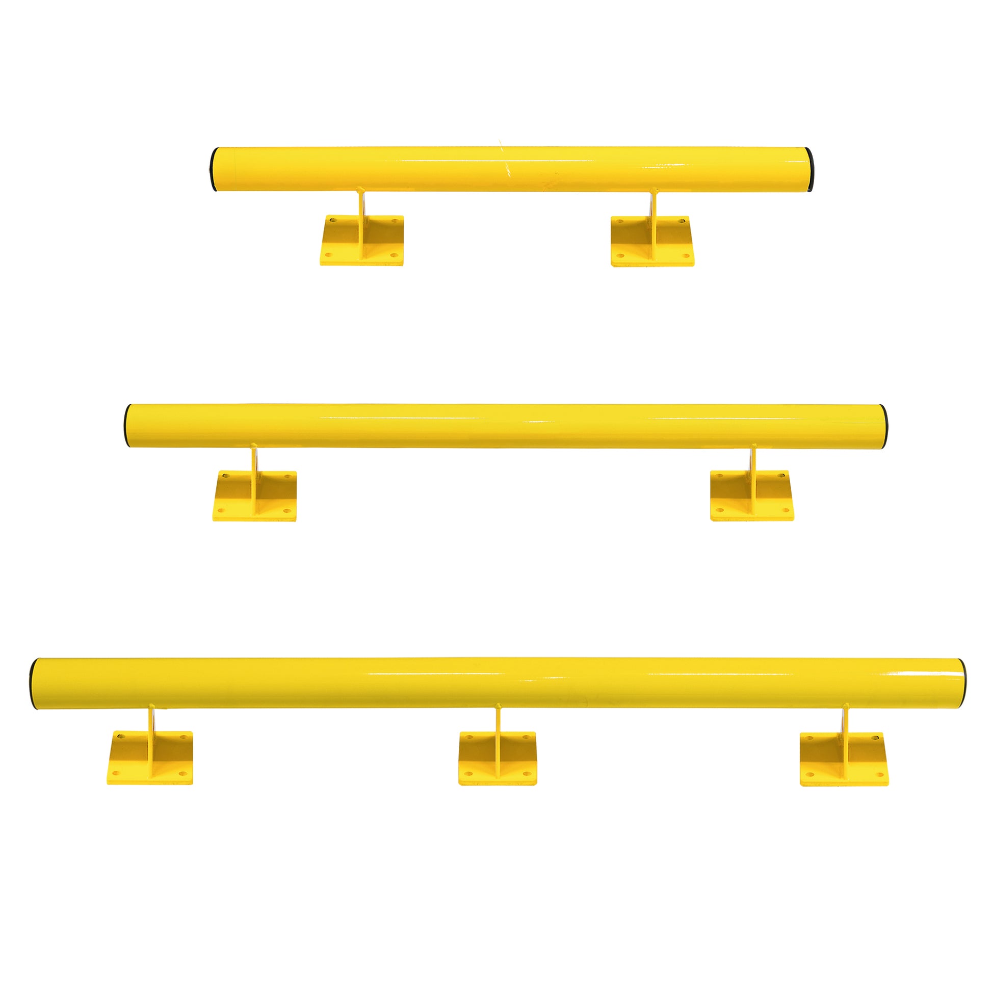 Sehr robuste Konstruktion: Das dickwandige Stahlrohr ist durch Metallstege mit einer massiven Bodenplatte verbunden. Seitliche Abschlüsse durch schwarze Kunststoffkappen.