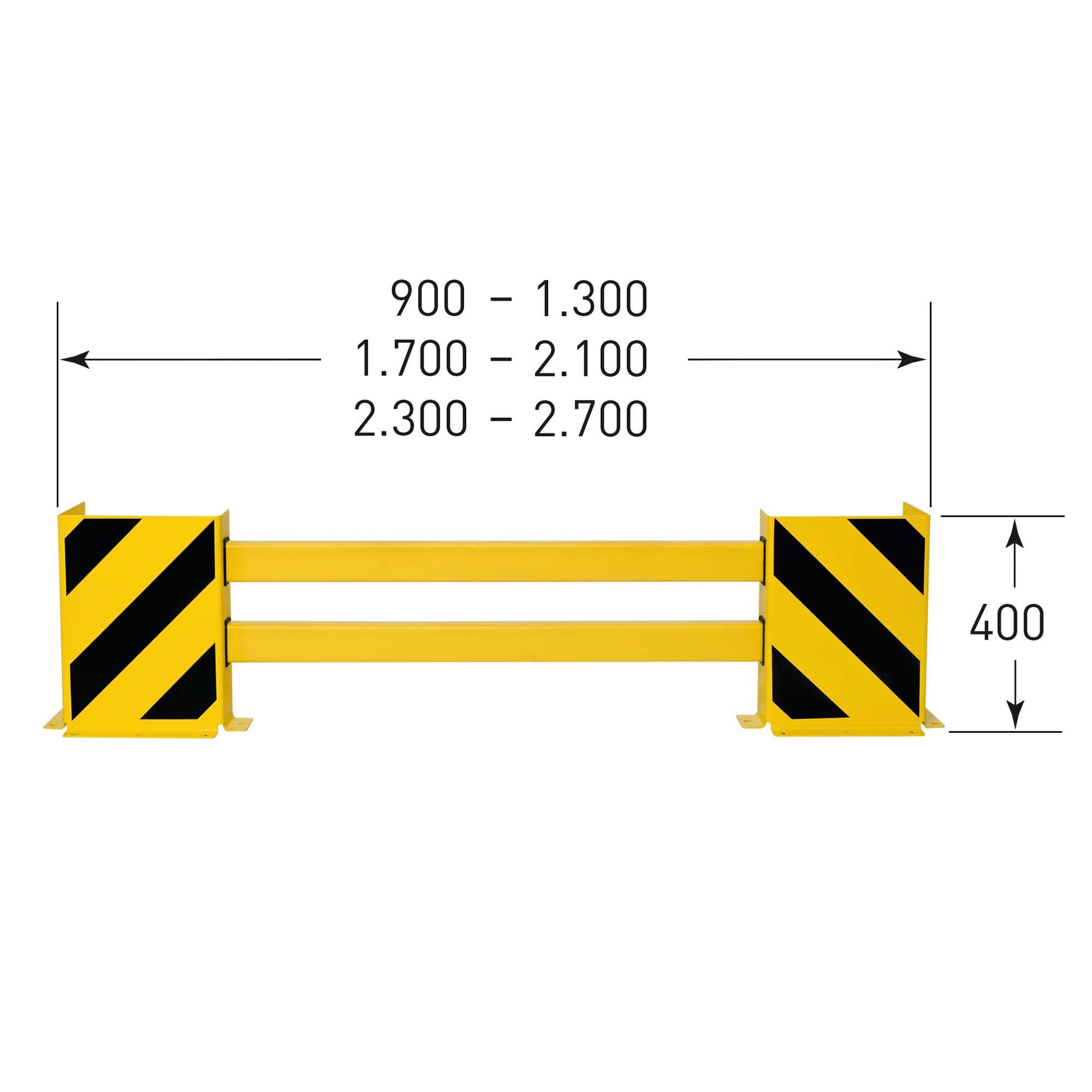 Kombination aus Anfahrschutz-Winkeln aus Stahl mit zwei Planken aus Kunststoff.