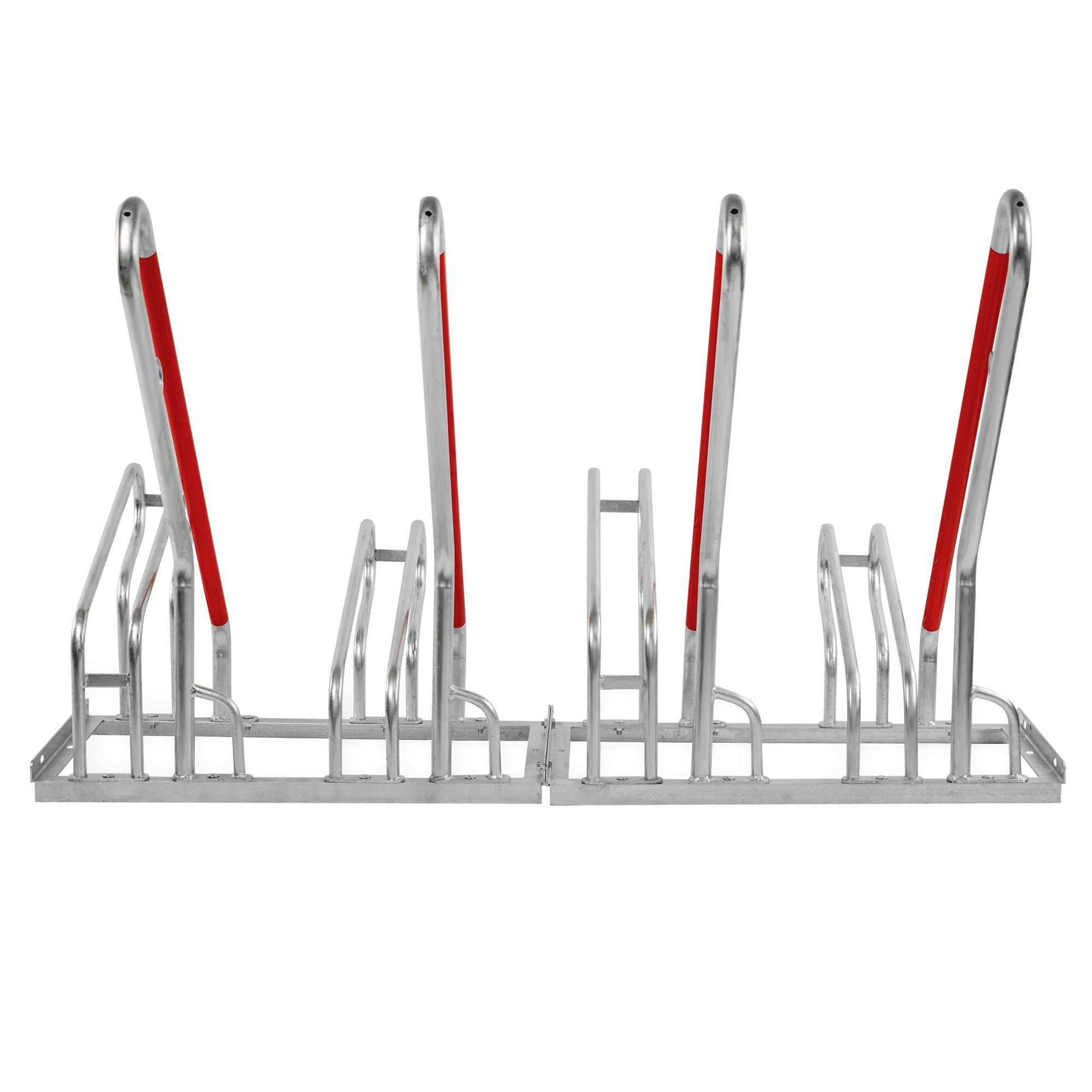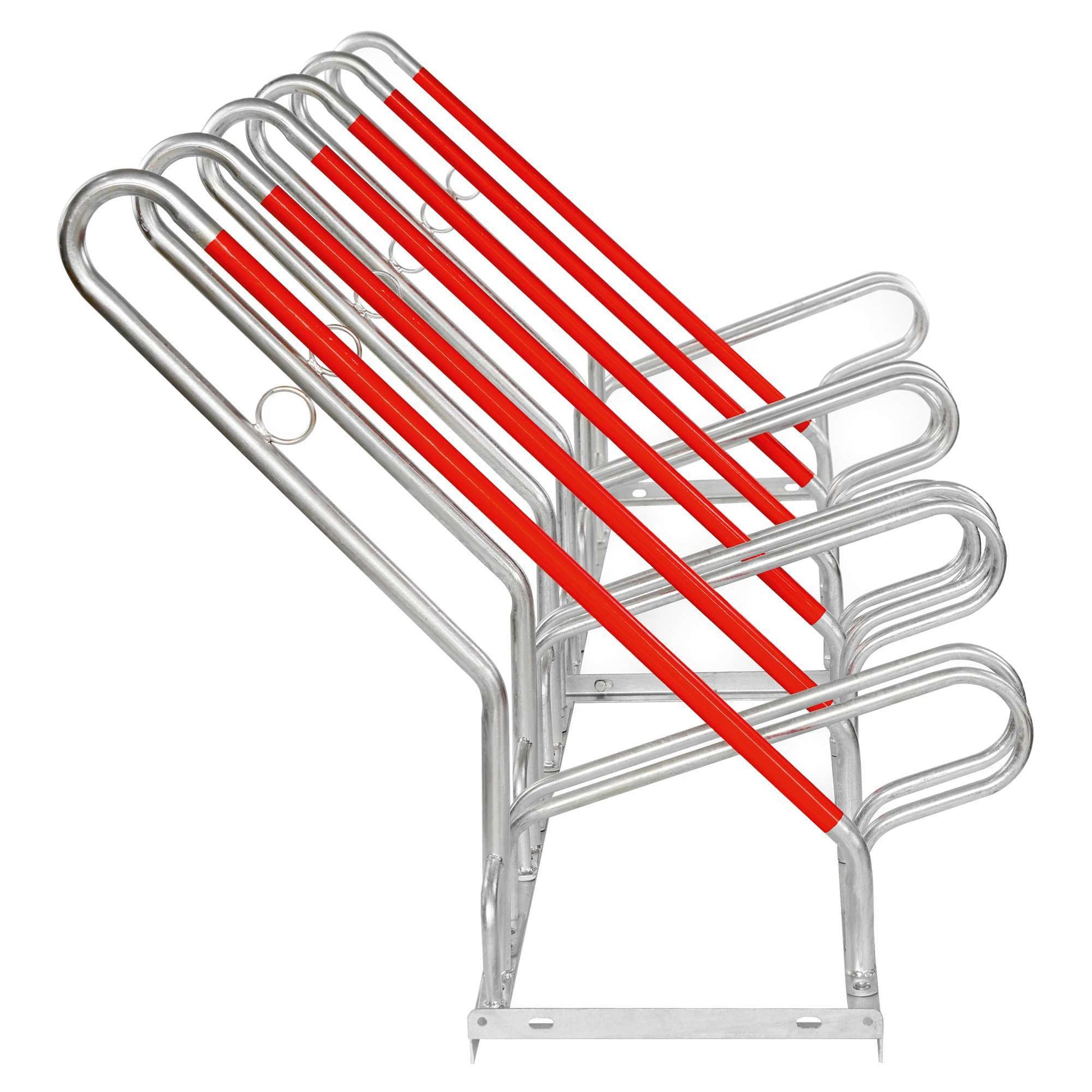 Der CITY-Fahrradständer HYBRID ist ein robuster Fahrradständer aus feuerverzinktem Stahl und verfügt über praktische Anlehnbügel mit roter Schutzlackierung. Diese funktionellen Anlehnbügel schützen nicht nur gegen mutwilliges Umdrücken der Räder, sondern auch gegen Folgeschäden an den Felgen.