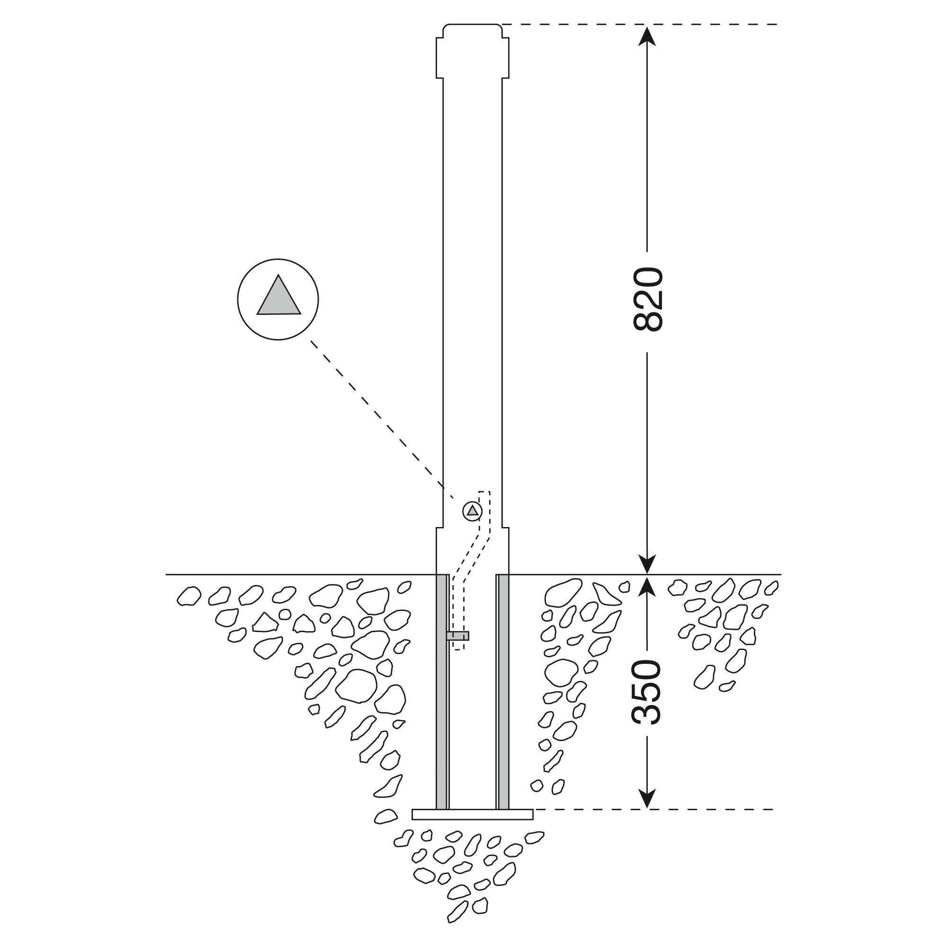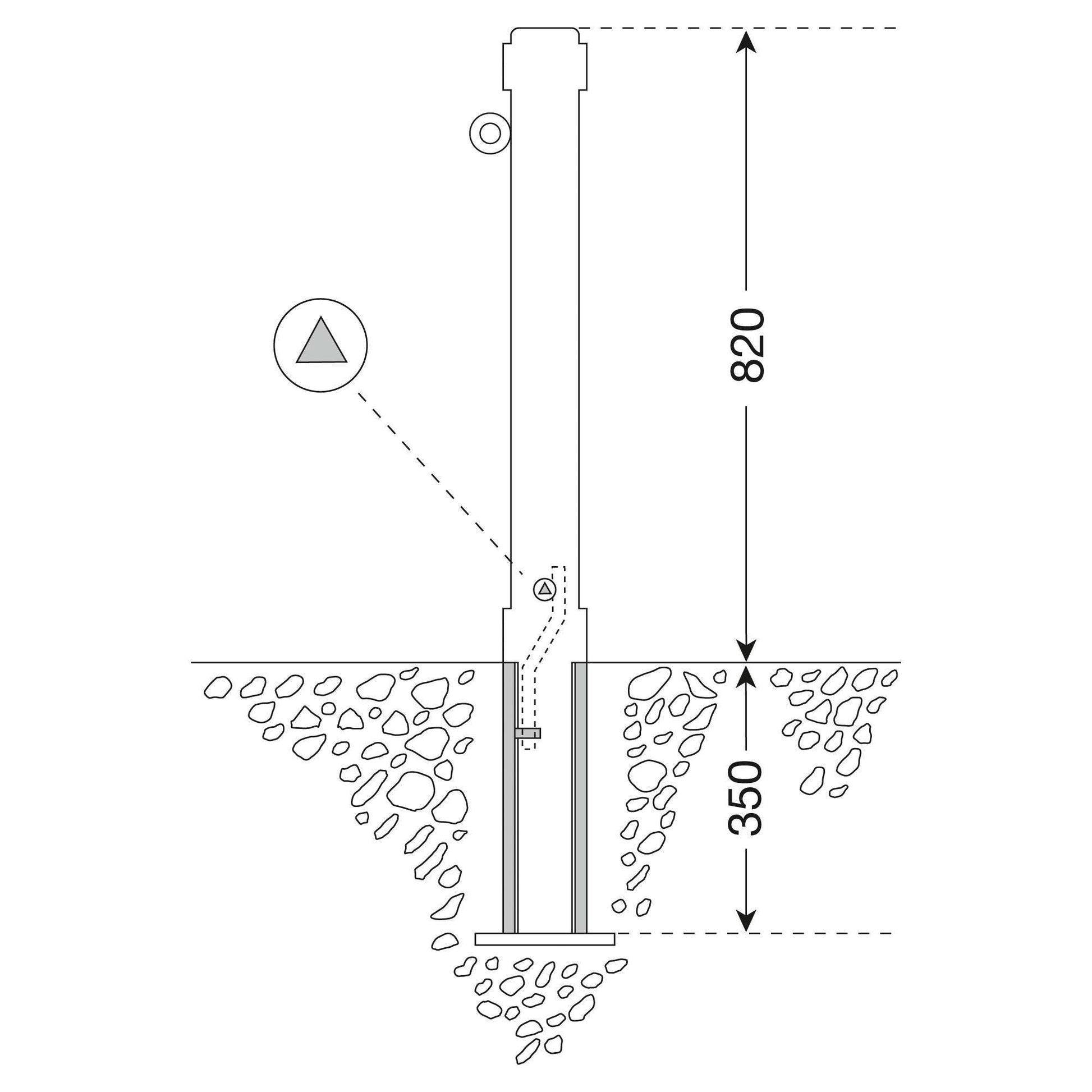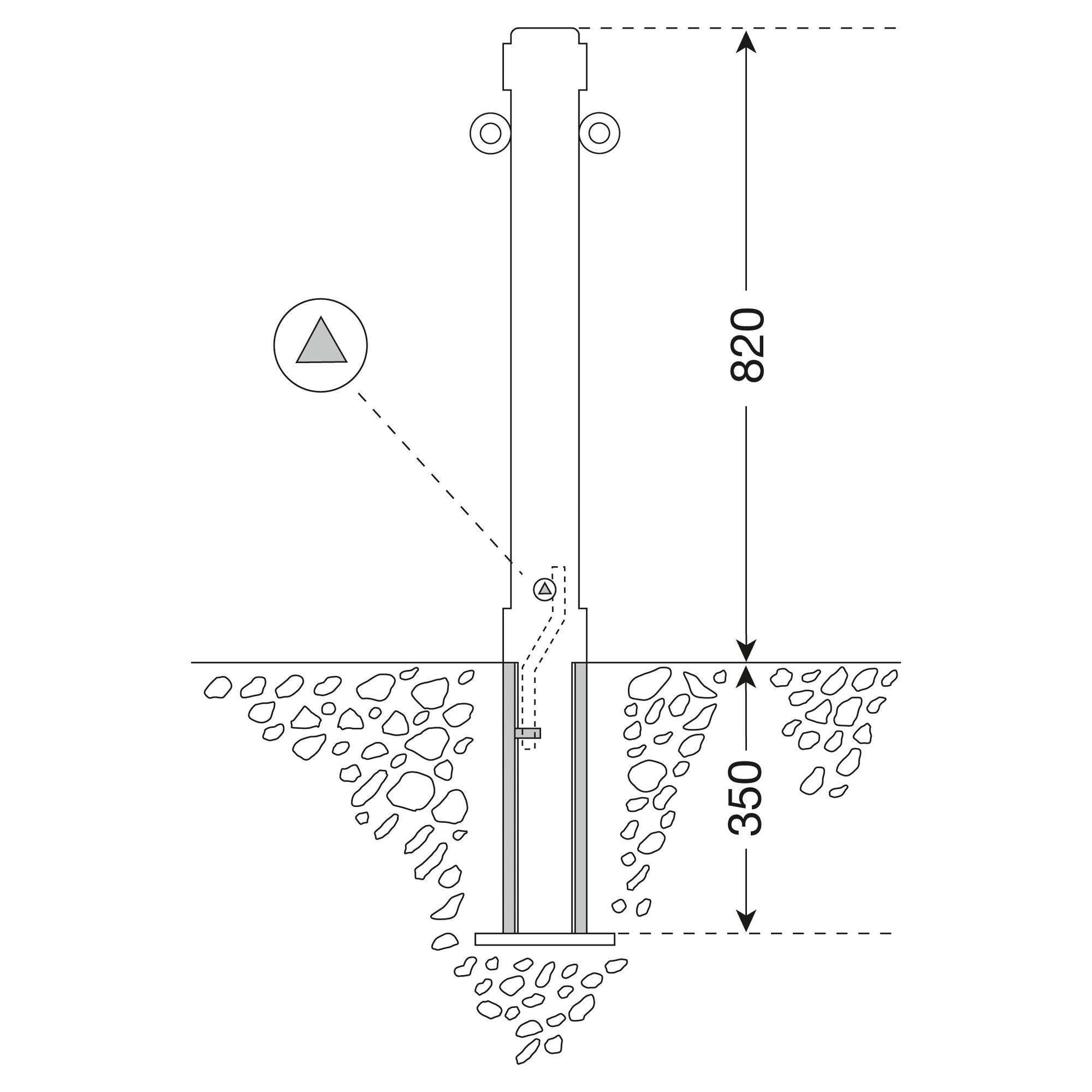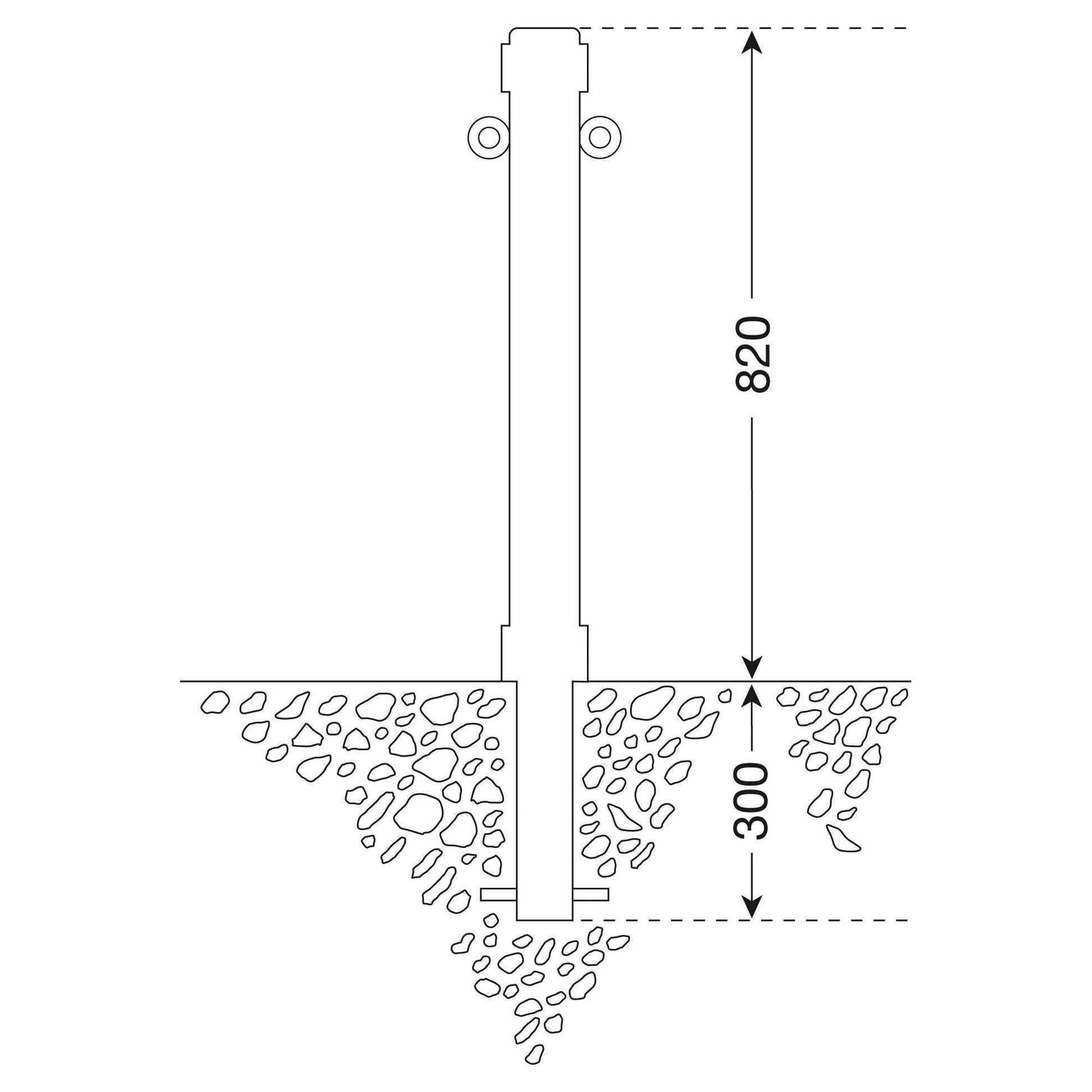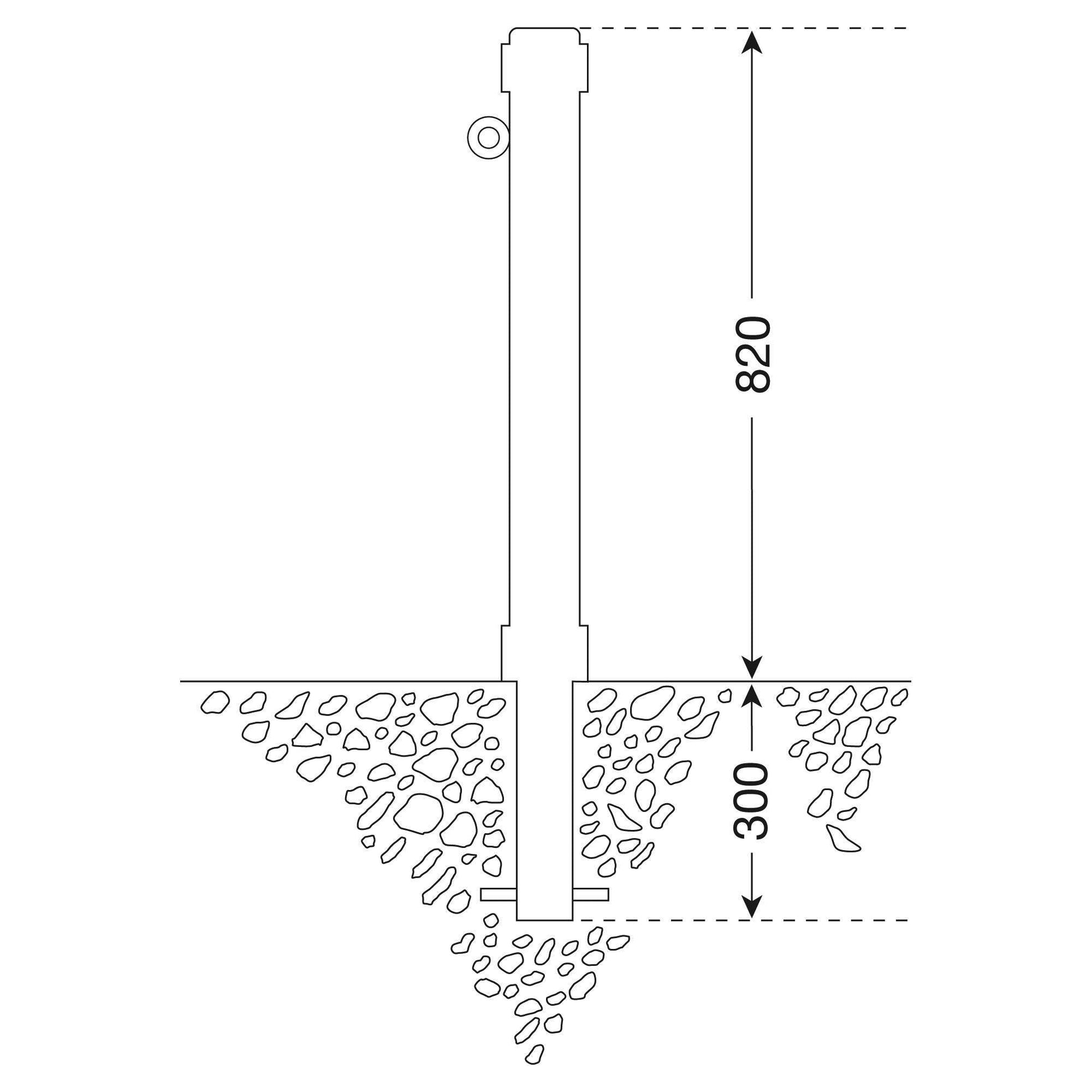 Zum festen Einbau mit Erdanker; eine Öse zur Kettenführung.