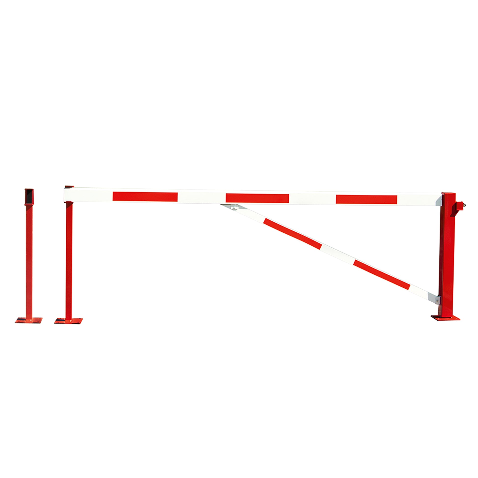 Leicht zu bedienende Schranke mit zwei Auflagepfosten für optimalen Schutz in geschlossener und geöffneter Position.