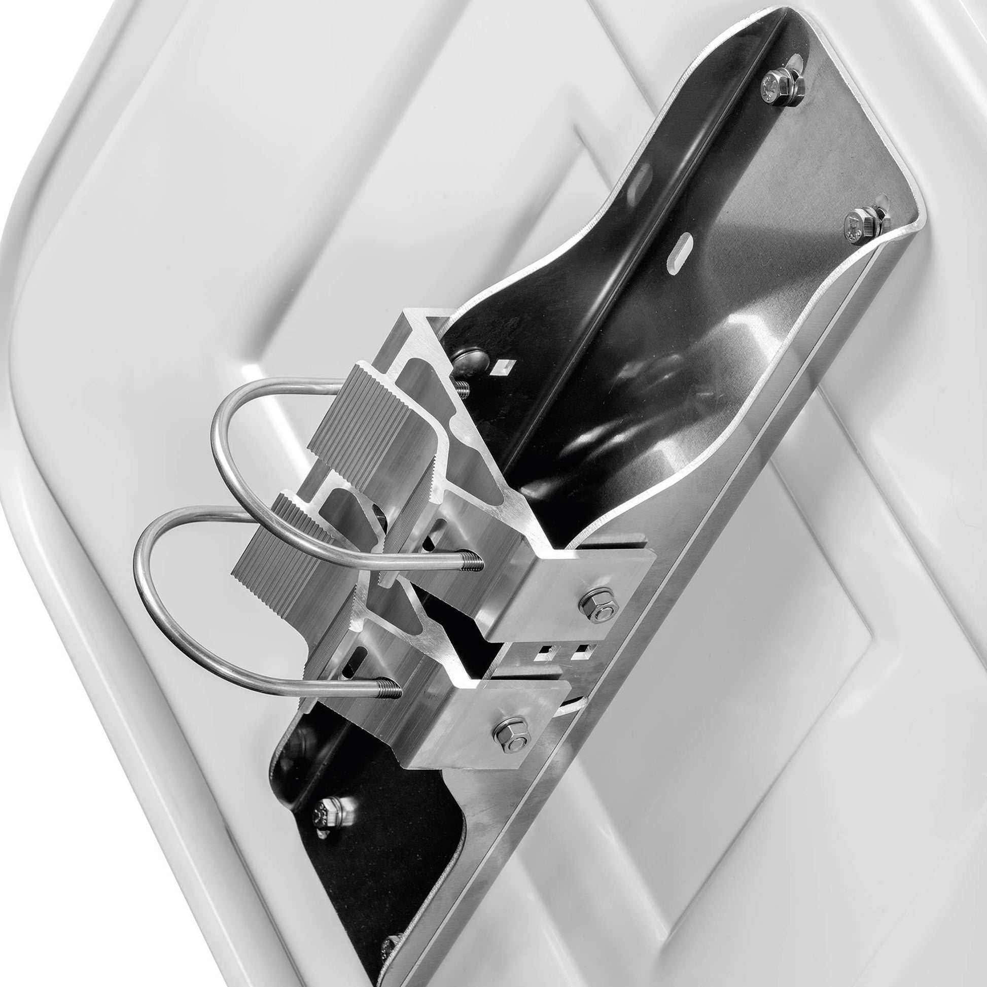 Universal-Schelle für Pfosten 60 – 90 mm und integrierter Bandschellenbefestigung. (Kein Adapter mehr nötig.)