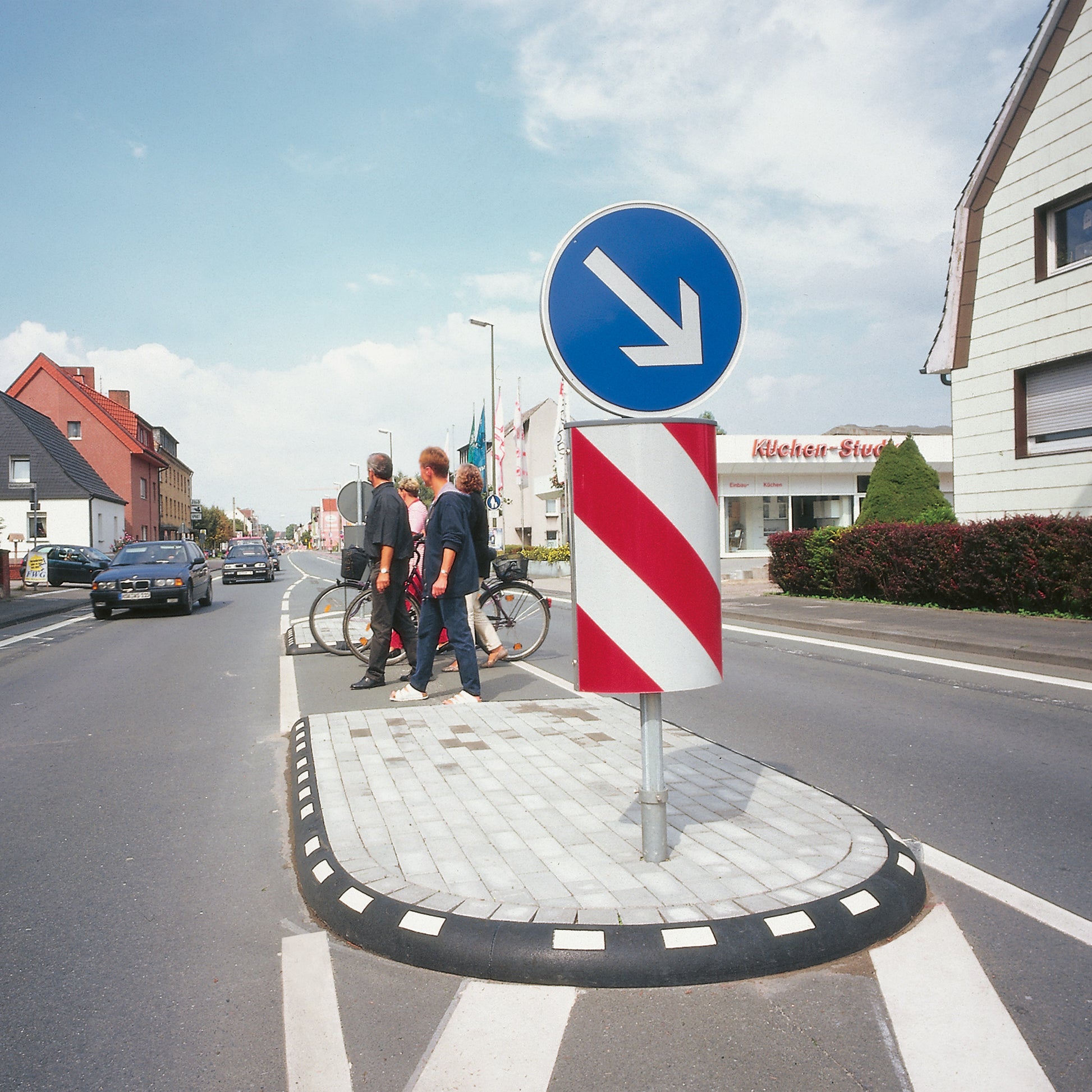 - Begrenzen / Einfassen von Verkehrsinseln und Fahrbahnteilern (Mindestdurchmesser: 250 cm / 15 cm Höhe; 350 cm / 10 cm Höhe)