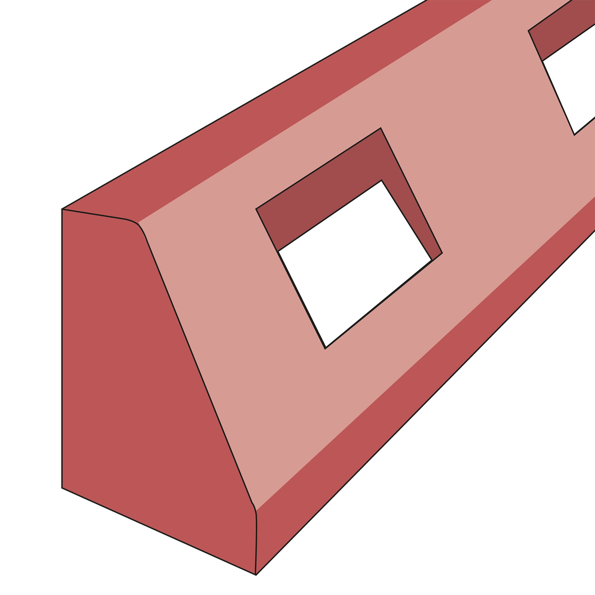 Schwarzes Standardelement, kombinierbar mit Endstücken gleicher Farbe, entweder in hoher (15 cm) oder flacher (10 cm) Ausrichtung.