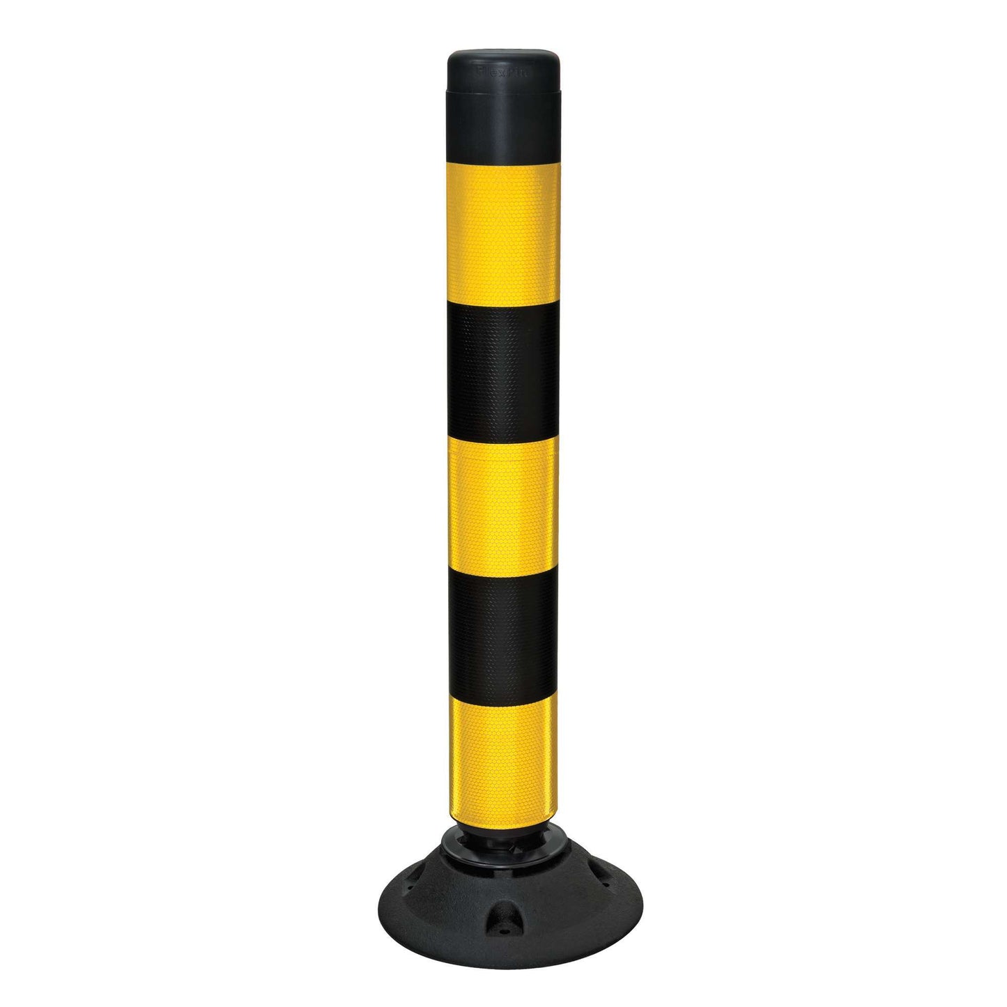 Der FlexPin ist ein voll retroreflektierender Leitzylinder, die "flexible" Variante des LeitPins. Durch ein Gelenk am Zylinderfuß kann er gefahrlos angefahren und im Notfall überrollt werden. Danach richtet er sich selbsttätig auf.