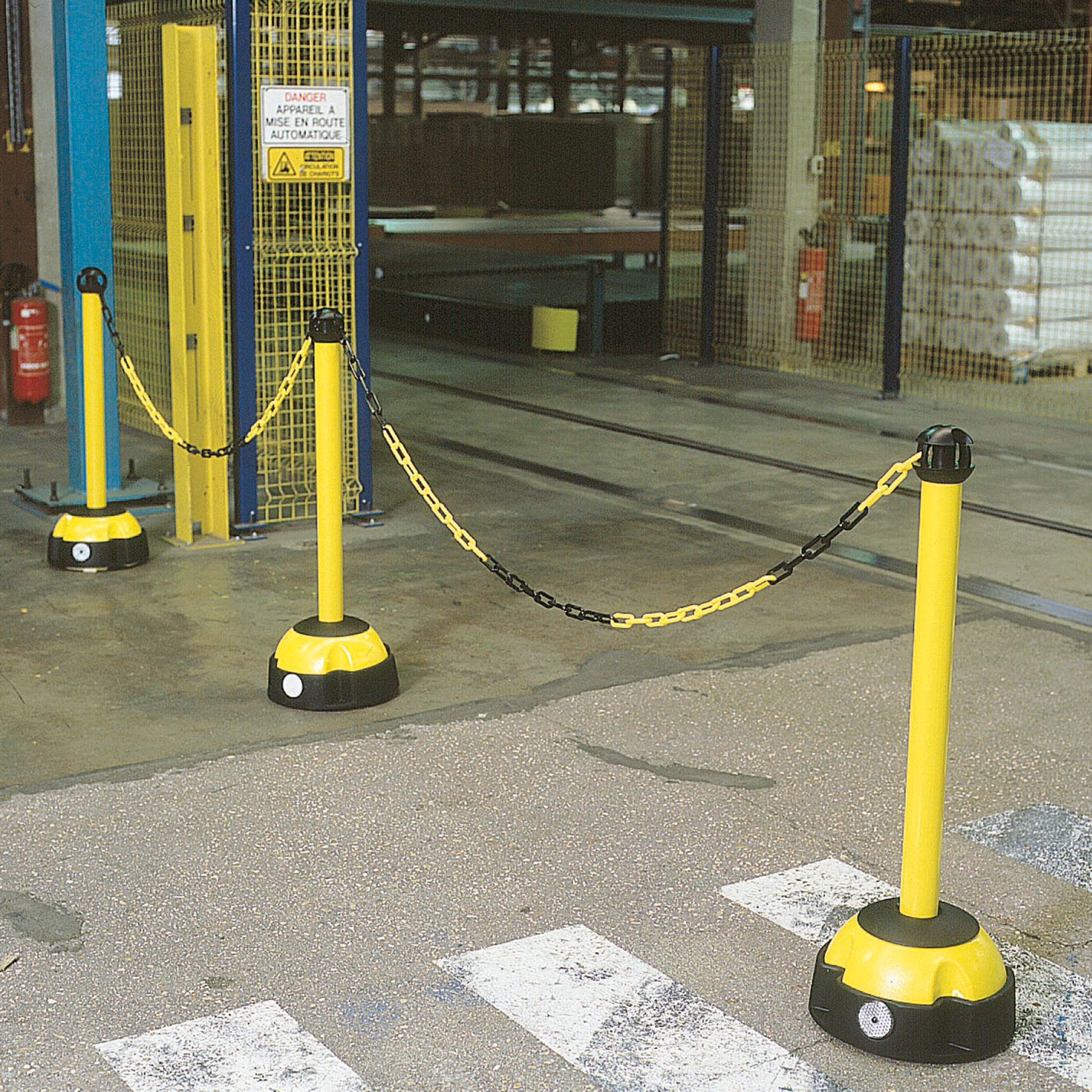 Der MORION Ketten-Warnständer ist ein robustes, günstiges Absperr- und Leitsystem zum Einhängen von Sperrketten.