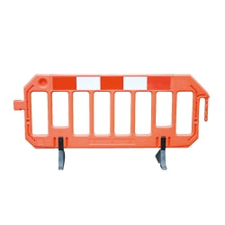 Leichte Handhabung durch geringes Gewicht. Trotzdem sehr standsicher durch breite Standfüße. Der Standfuß ist zur "Fußgängerseite" hin gekürzt, um Stolpergefahr zu minimieren. Für den Transport der Sperrgitter lassen sich die Standfüße seitlich drehen.