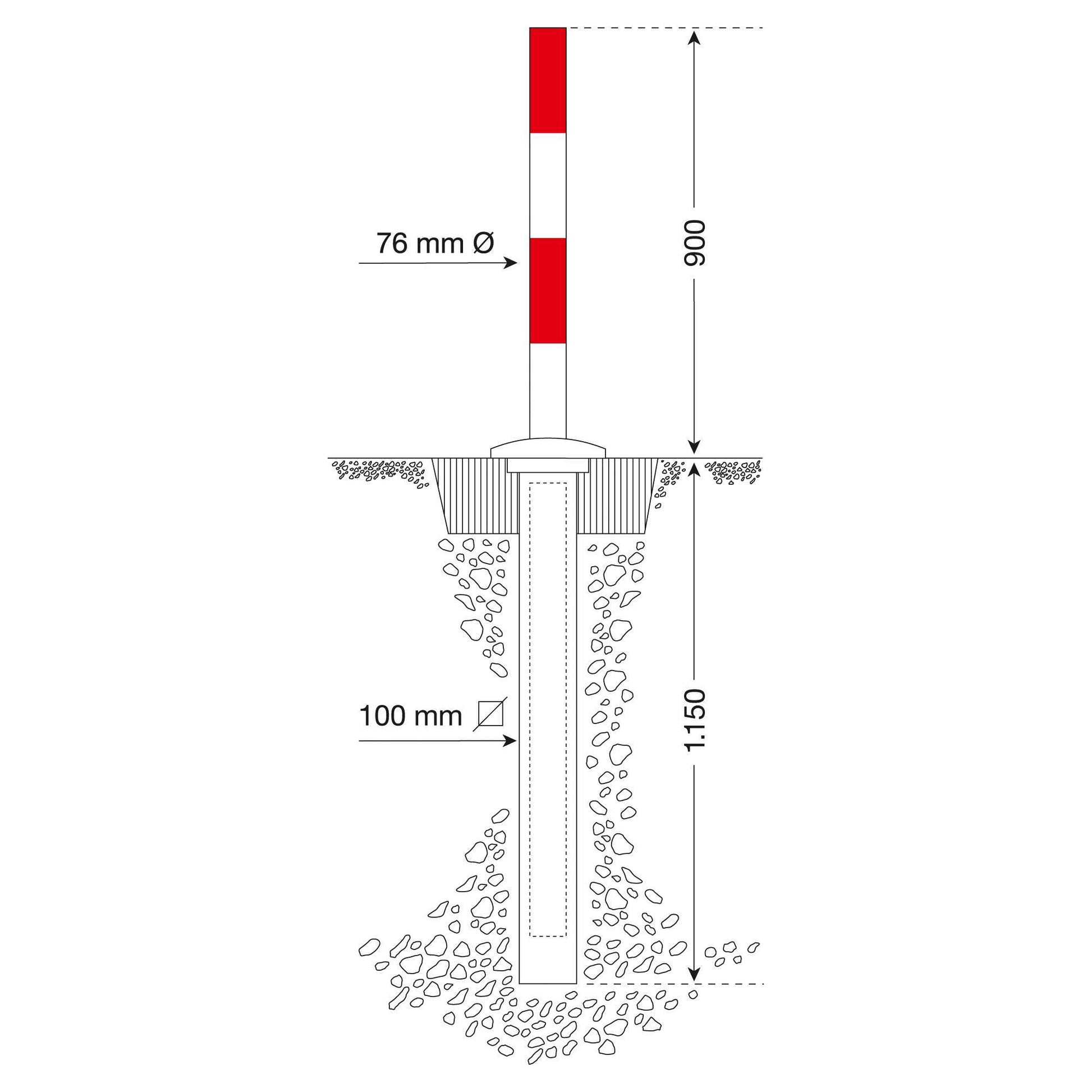 Der Pfosten kann mit Überflur-Hydrandtenschlüssel nach DIN 3223 in Sekunden versenkt werden: Der Verkehr kann die nahezu bündig einbetonierte Bodenhülse ungehindert überrollen.