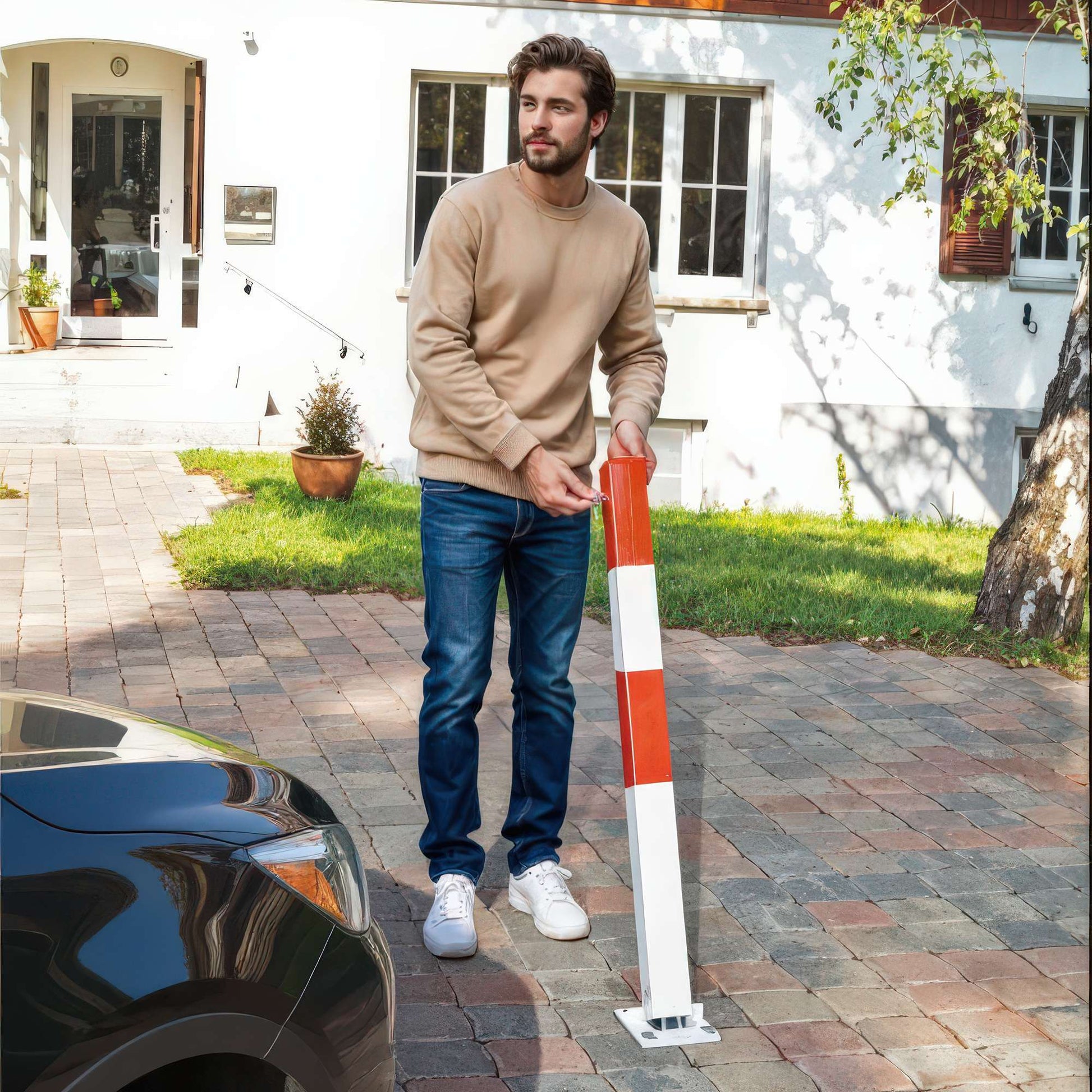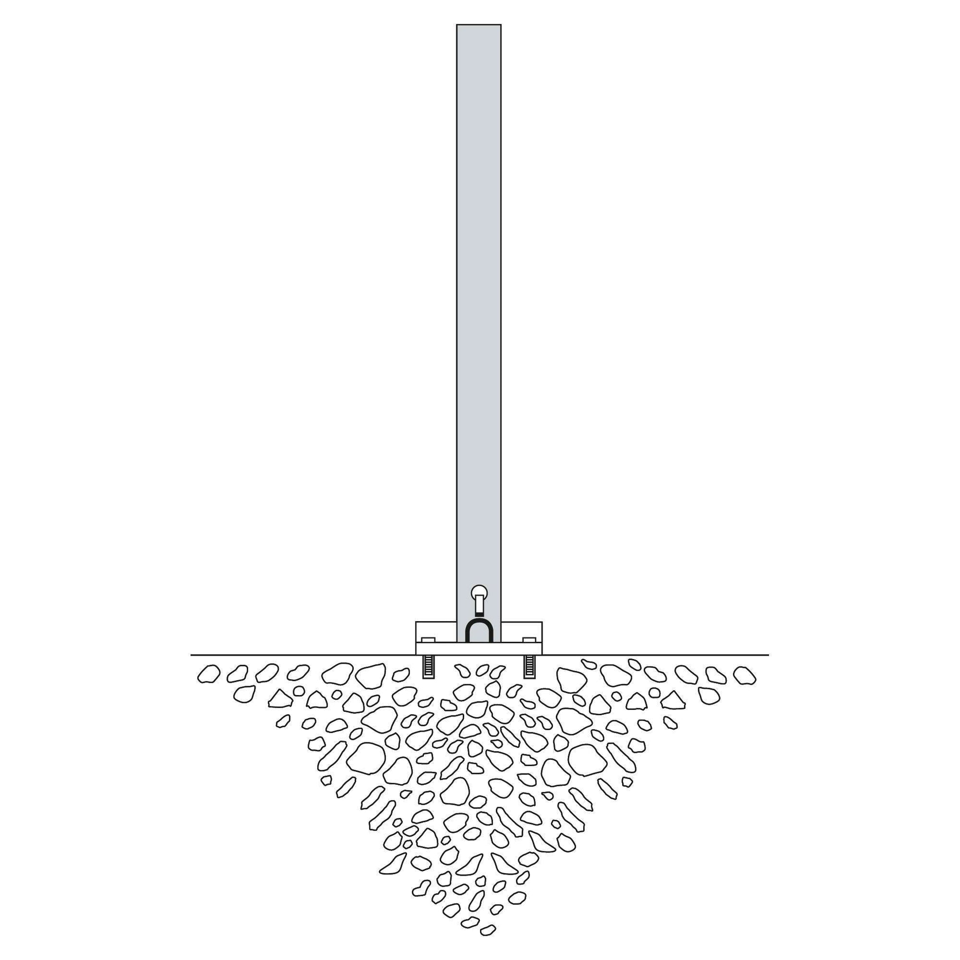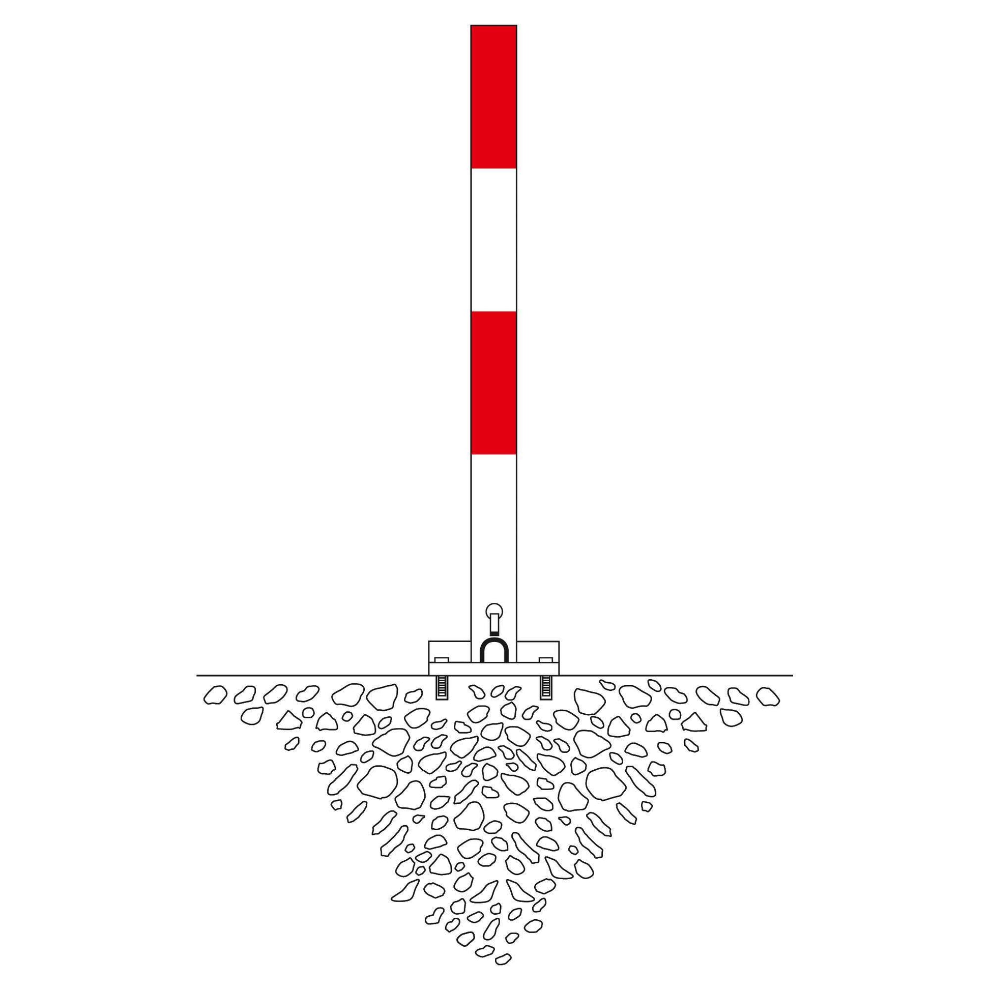 Nach Entsperrung am Zylinderschloss kann der Kipp-Pfosten flach auf den Boden umgelegt werden.
