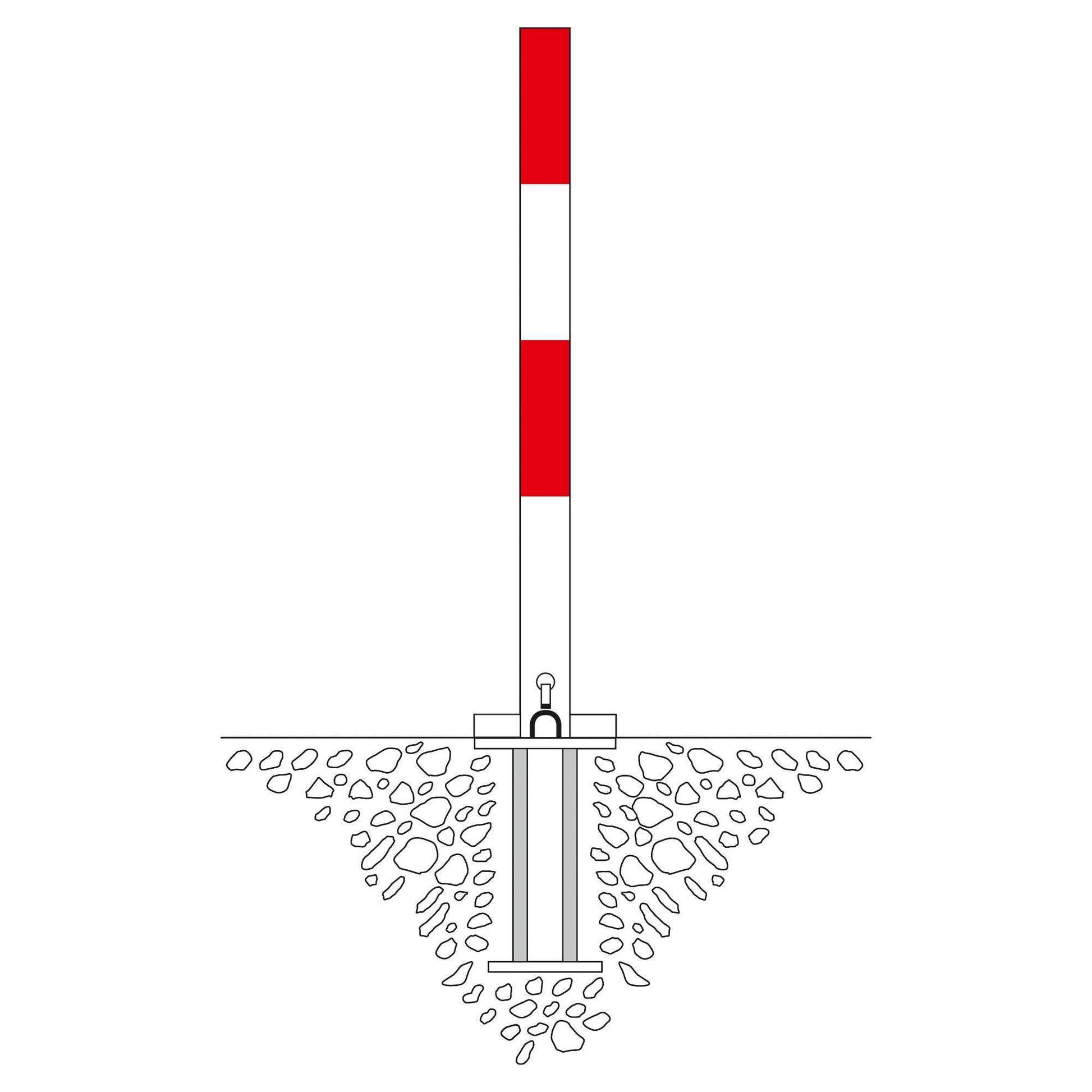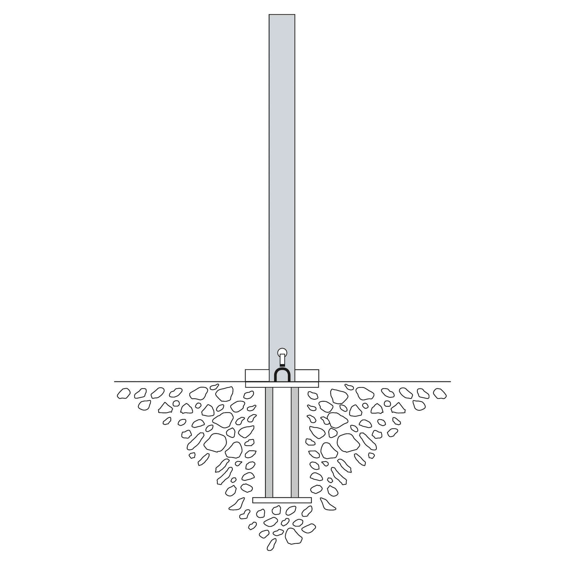 Nach Entsperrung am Zylinderschloss kann der Kipp-Pfosten flach auf den Boden umgelegt werden.